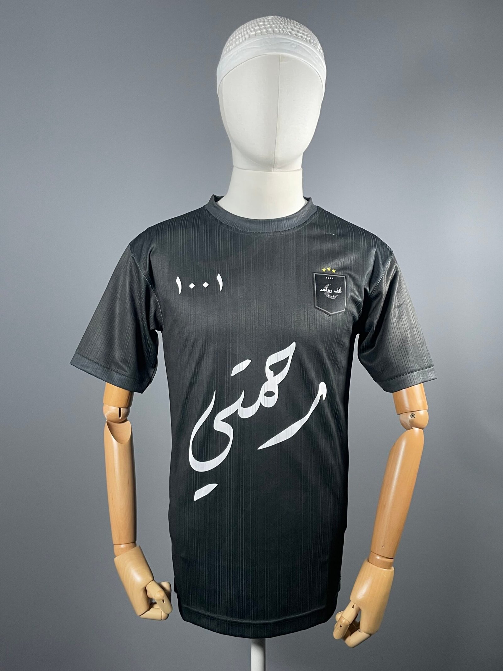 Flocage arrière en arabe authentique : “مهاجر” + chiffre arabe ٧