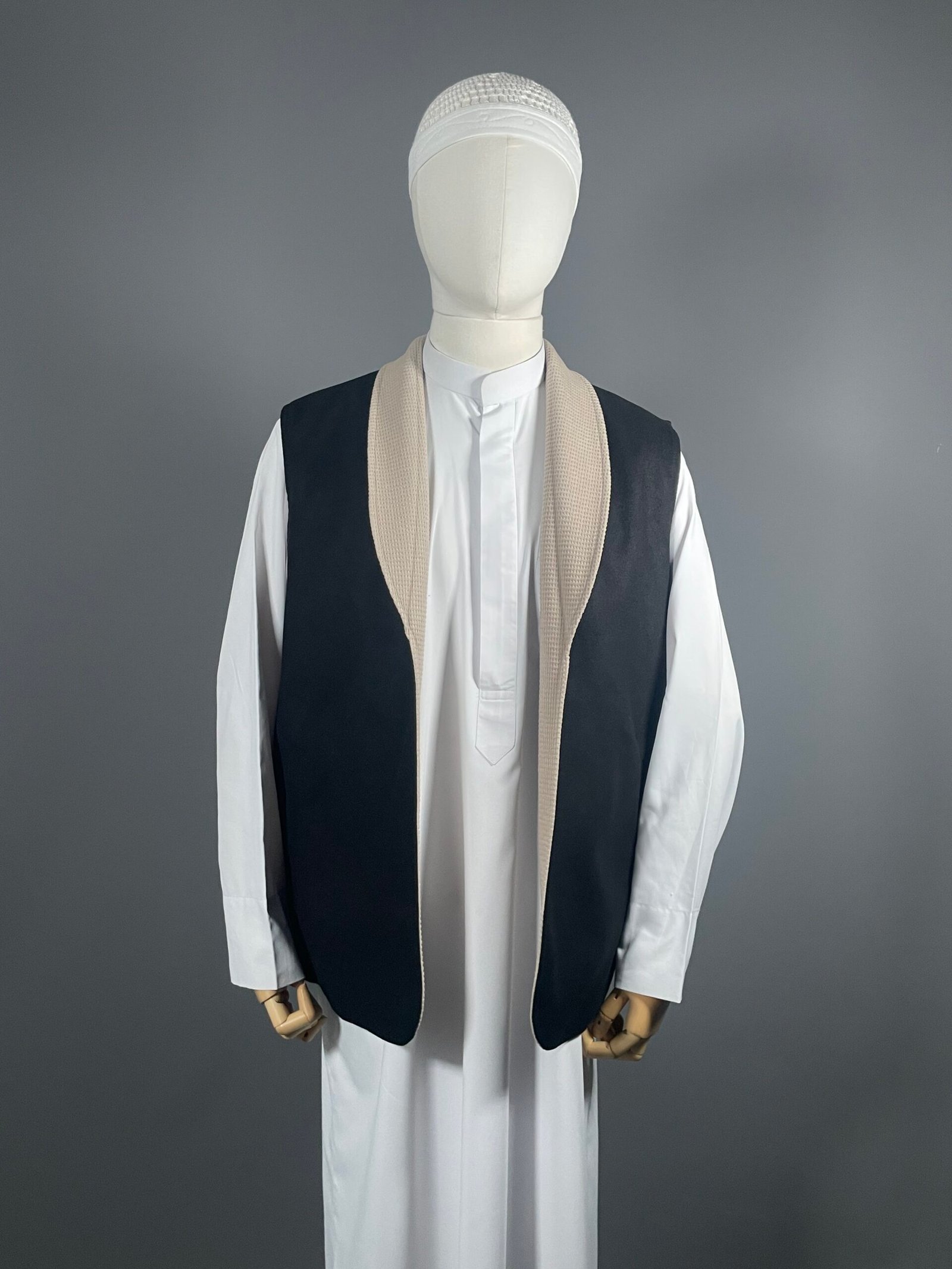 Polyvalent, le Gilet Farwa Prestige peut se porter : sur un qamis, avec une tenue plus décontractée,